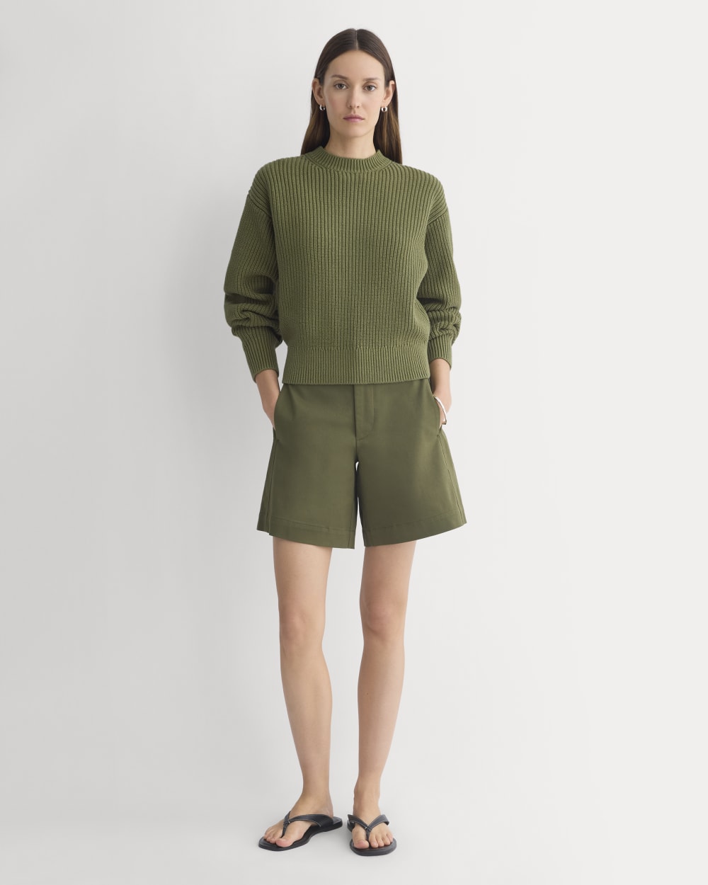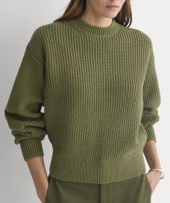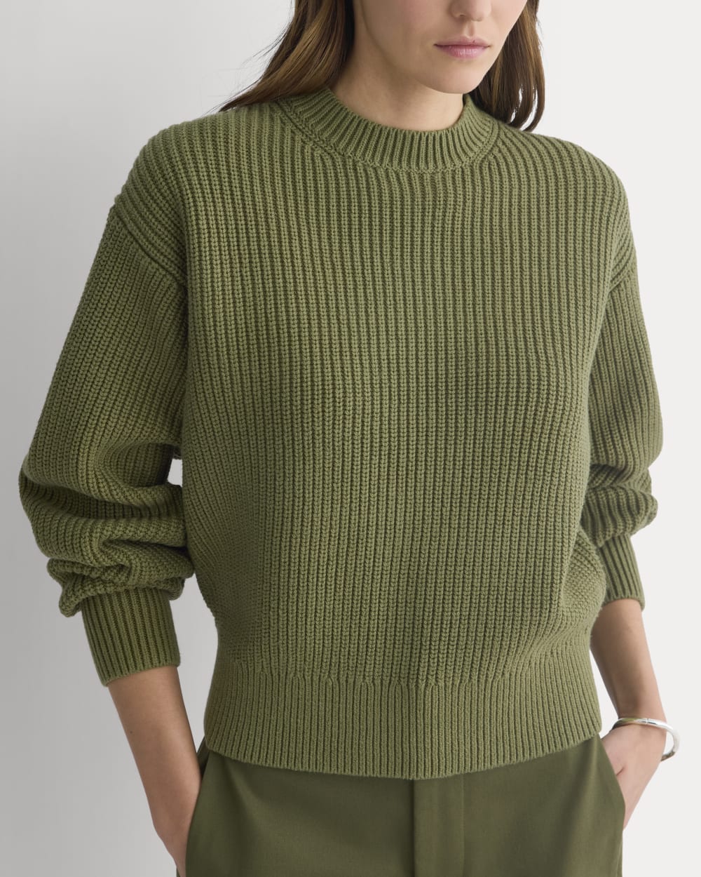 A chunky ribbed crew with dropped shoulders, subtle sleeve volume, and a snug hem that pairs perfectly with high-rise bottoms. Made from 100% organic cotton, it’s cozy without feeling heavy.