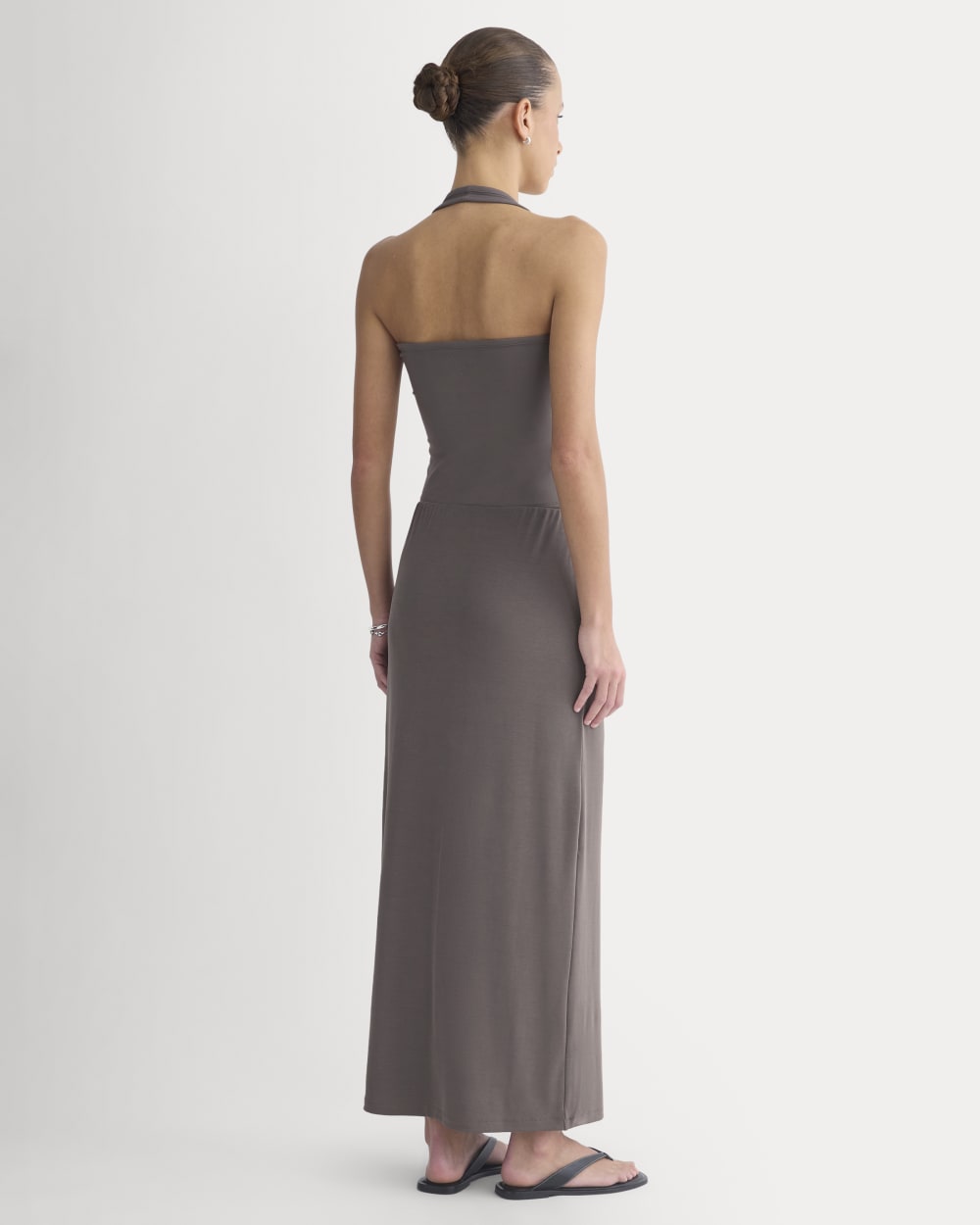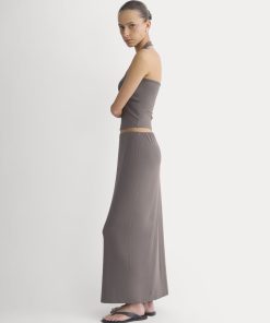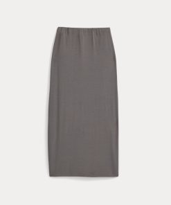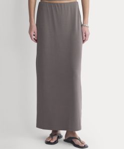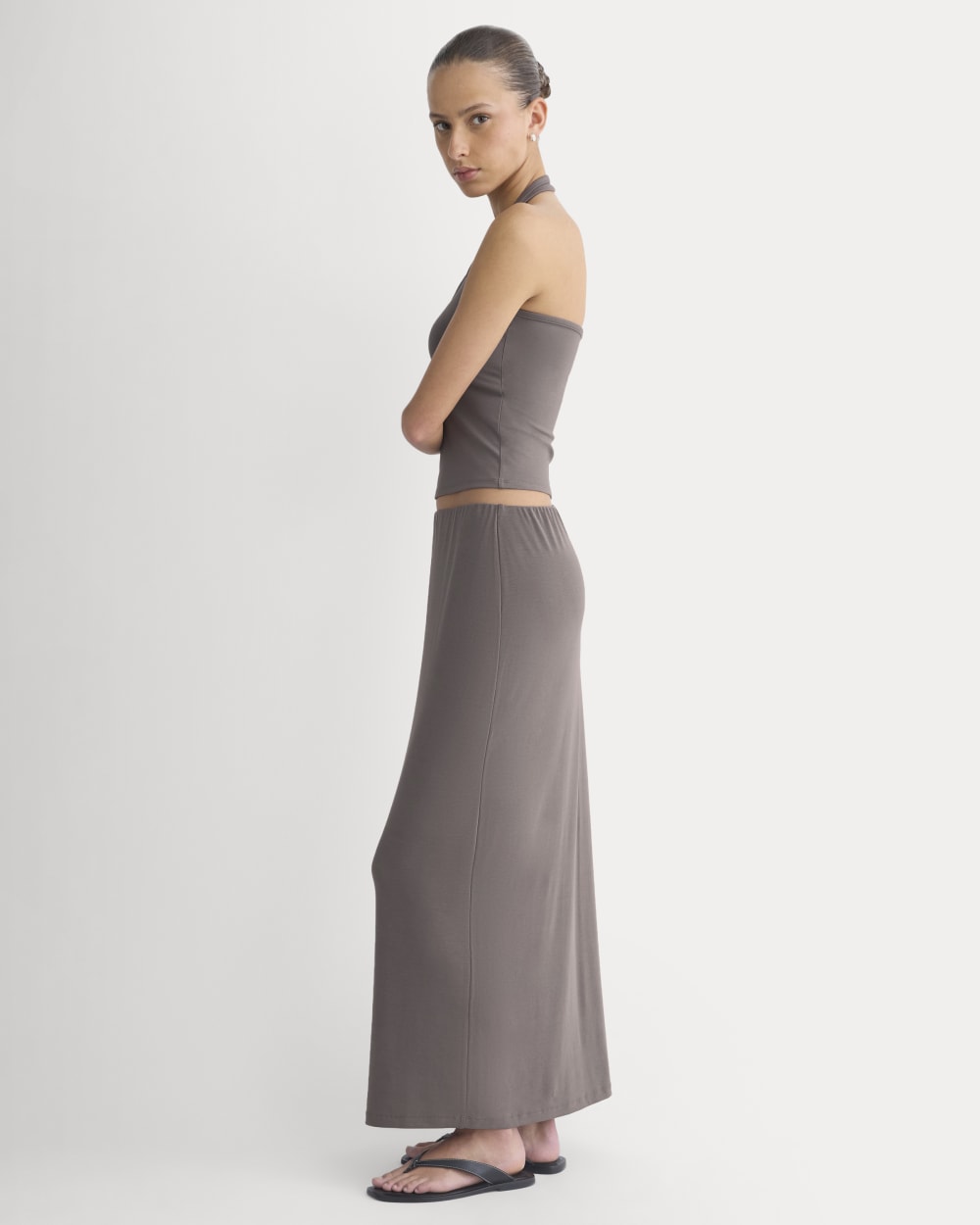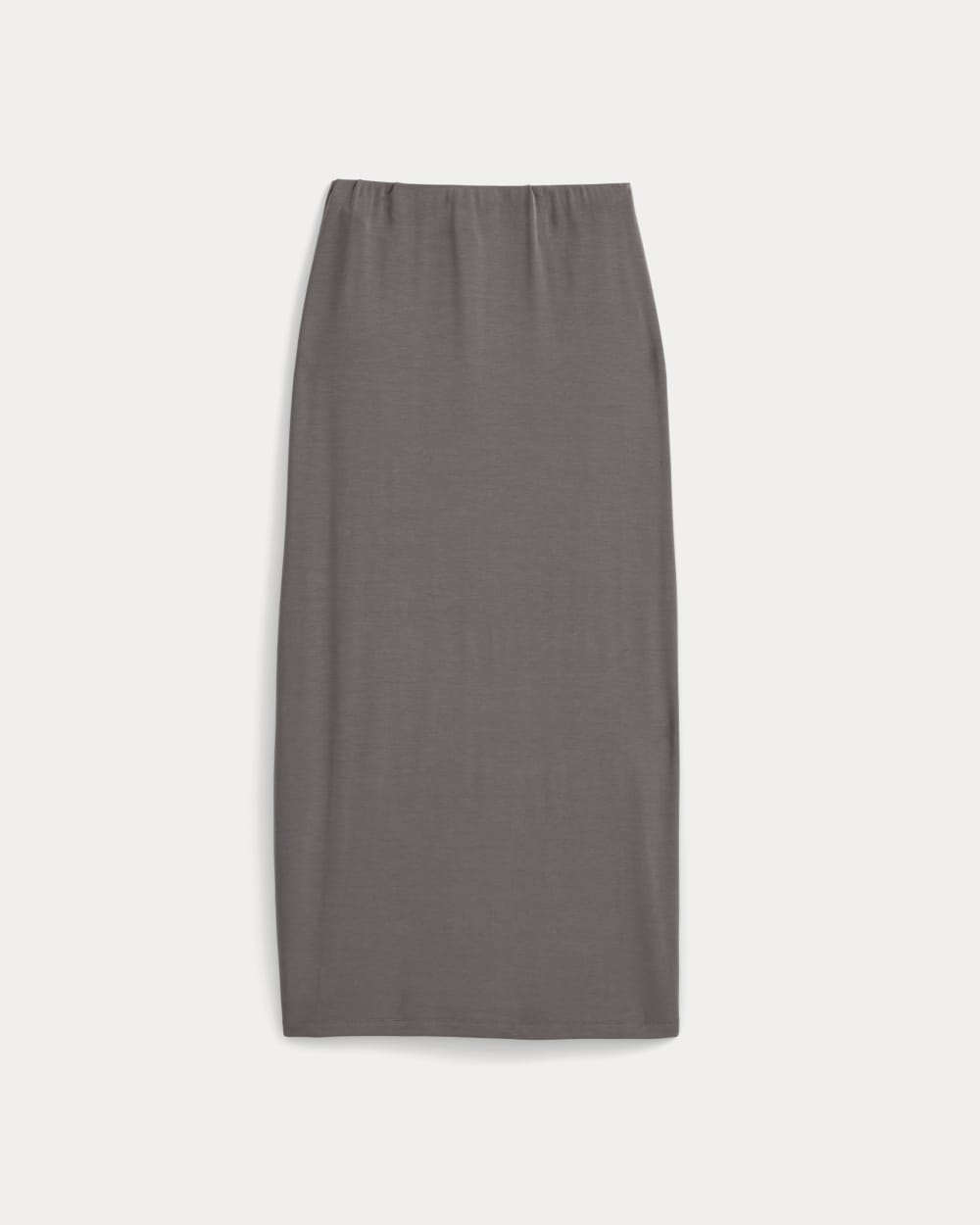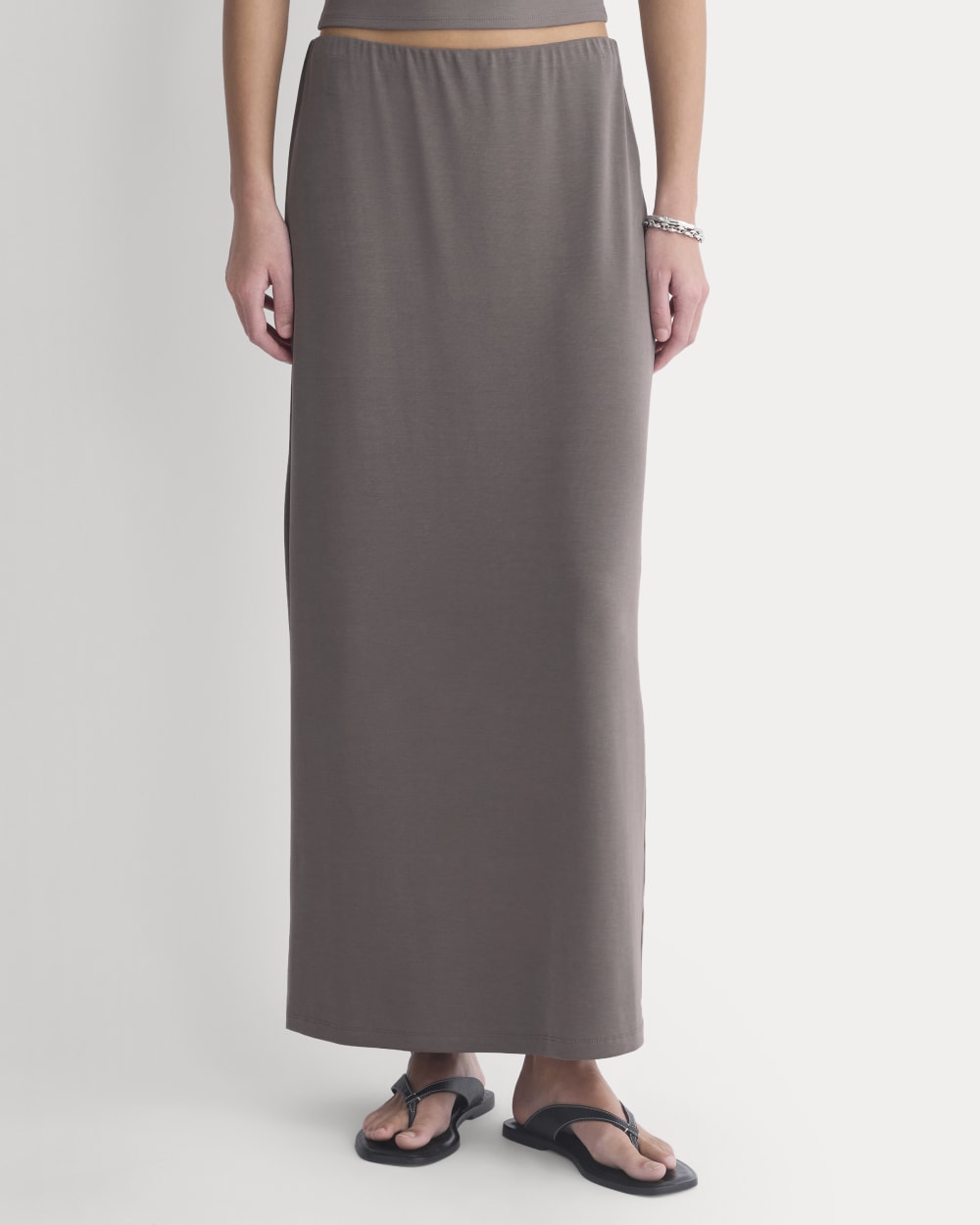 This floor-length maxi skirt is designed to skim the waist and hips before opening slightly through the sweep. The hidden interior waistband keeps the look smooth and gives the silhouette a more elevated feel. Made in our Butterknit fabric, it drapes beautifully moves fluidly. Simple to style but striking in shape, pair it with fitted tops for a more formal feel or a cropped tee or tank for a more relaxed look.