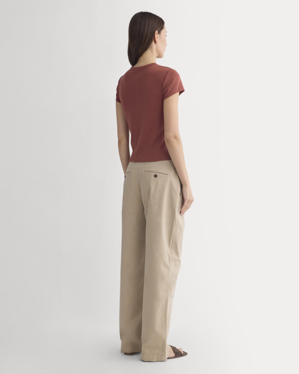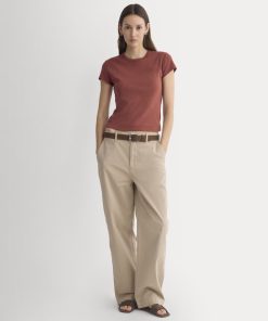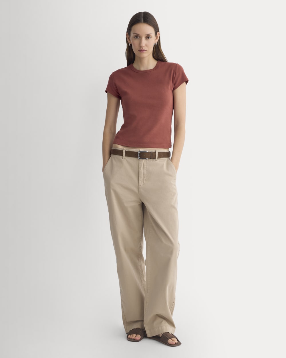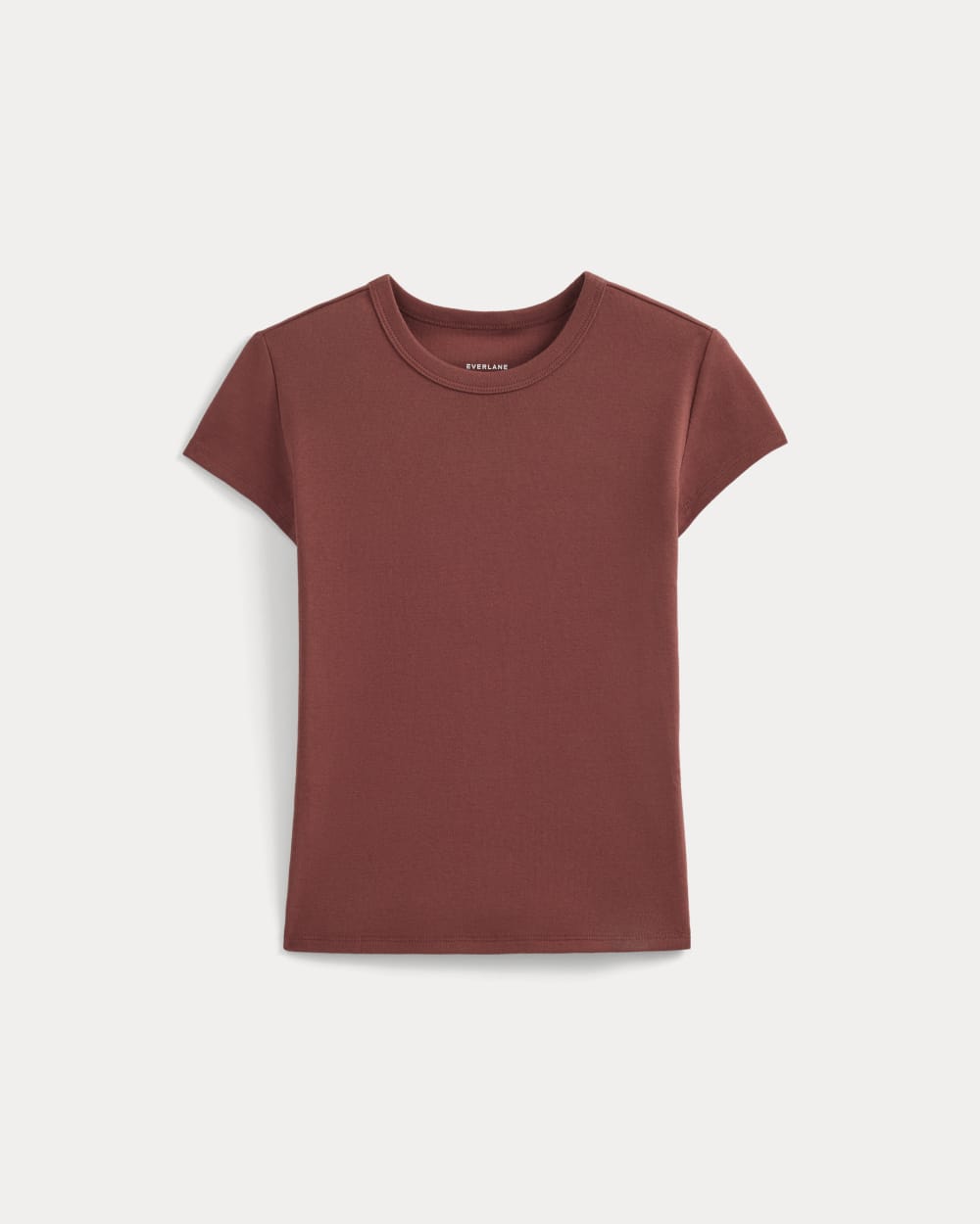 Bringing a new shape to your everyday tee, this fitted, crewneck tee is made with a certified organic ribbed cotton to softly hug the body. A go-with-anything tee, try it with boot-flare jeans, under a blazer, or with a midi skirt, for endless options.